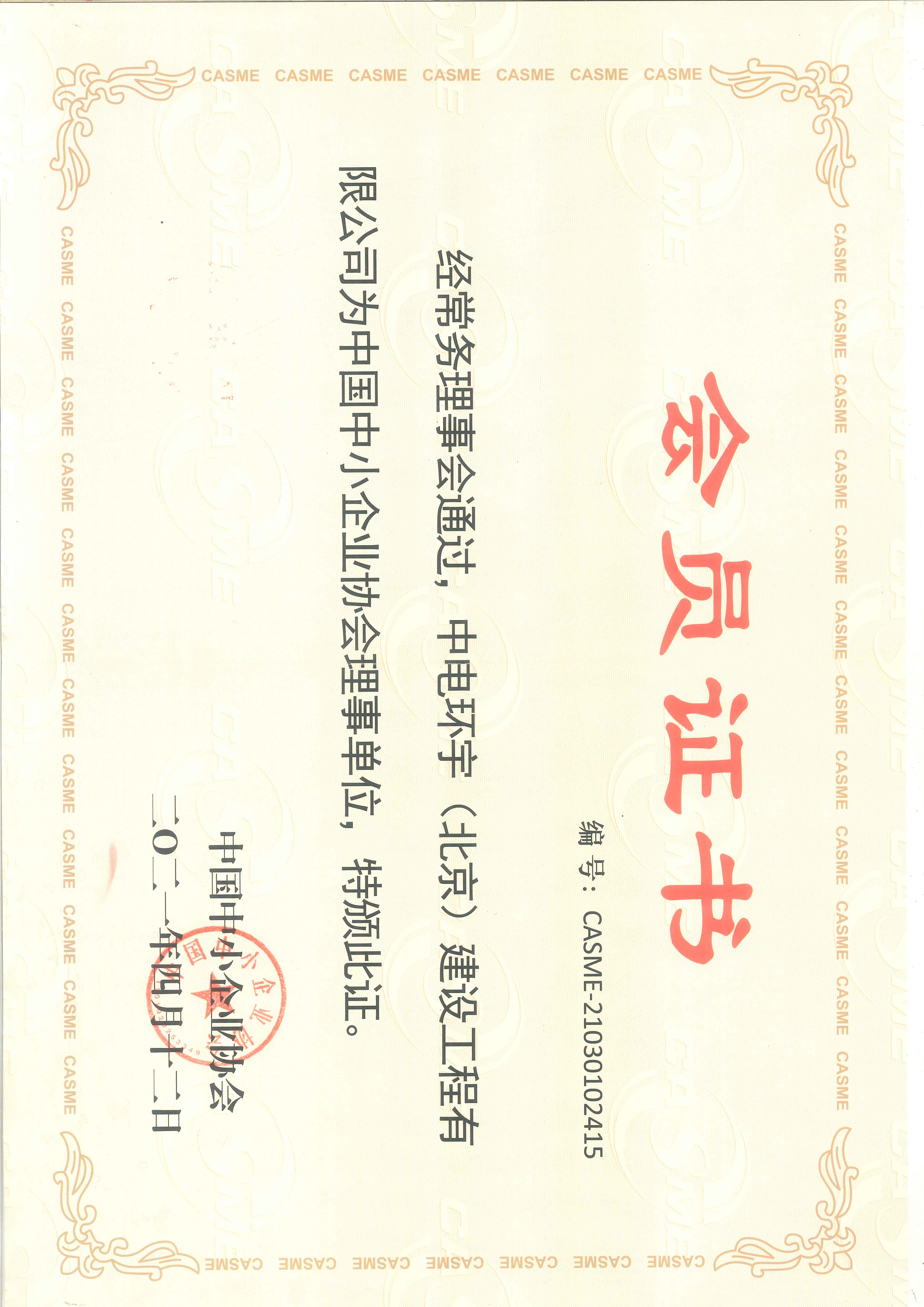 中小企业理事单位会员证书